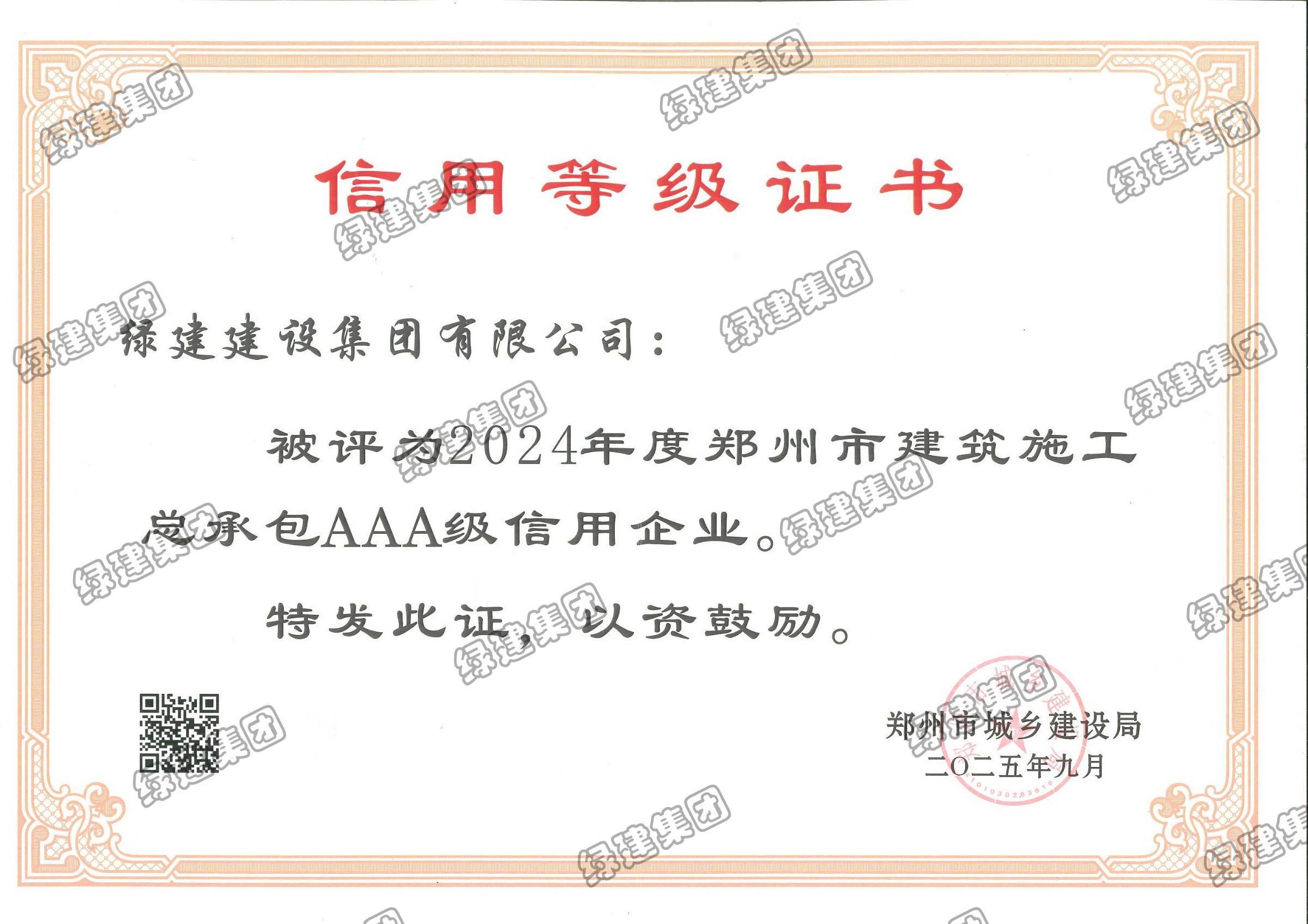 2024年度郑州市建筑施工总承包AAA级信用企业
