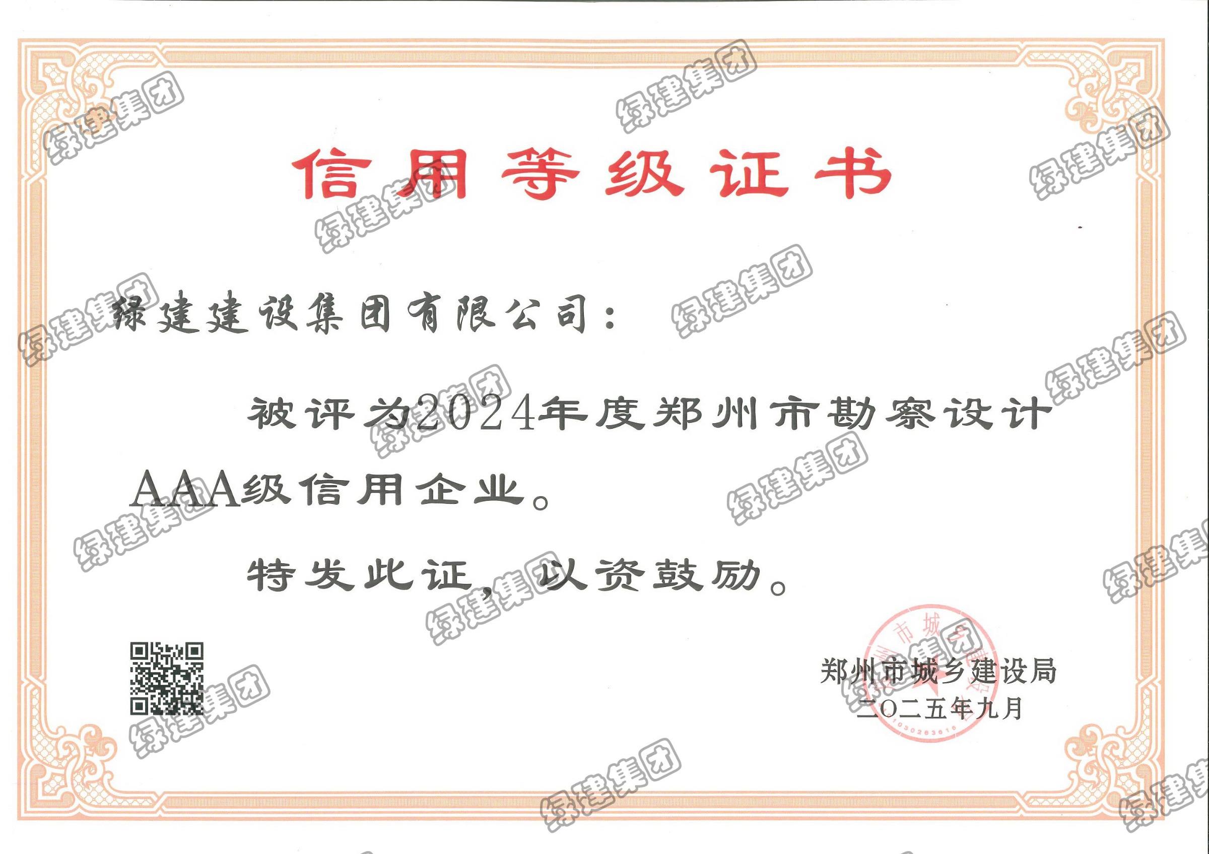 2024年度郑州市勘察设计AAA级信用企业